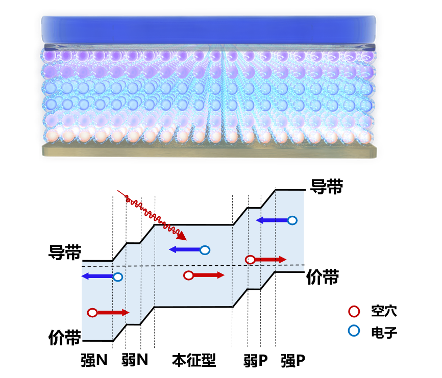 图4. 量子点梯度同质结器件与能带示意图