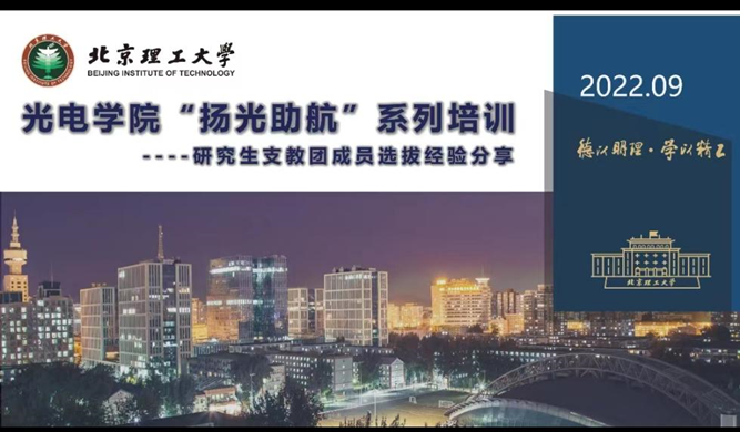 为加深2023届本科毕业生对支教等相关情况的了解,鼓励更多青年学子用青春奉献社会,参与到支教服务志愿活动中, 9月15日晚,det365登录网站主页开展了“扬光助航”研究生支教团成员选拔经验分享会。本次会议采用线上会议的形式,邀请了2017级毕业生李欣龙分享经验,由辅导员张芝瑞主持。