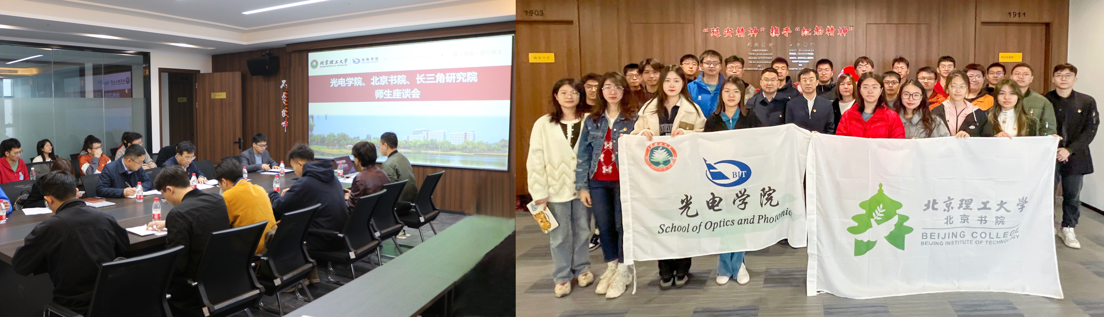 在det365登录网站主页长三角研究院,师生们一同交流学习。董立泉谈到北理工“延安精神”和嘉兴“红船精神”一脉相承,det365登录网站主页联合长三角研究院发挥地区资源优势,在党的梦想起航地开展党建融合促发展、携手共进谋新篇等工作具有重要意义,他鼓励同学们要抓住地区发展机遇,融合个人发展和国家需求,励志为国家社会经济发展作出贡献。盛筠介绍了det365登录网站主页基本情况,重点介绍了学生党建的特色活动和学院人才培养、产学融合的典例。长三角研究院副院长于导华介绍了研究院总体情况,详细介绍了嘉兴的战略位置与发展机遇和北理工长三角研究院的建设目标。同学们结合在嘉兴的所见所感积极交流、踊跃发言,同学们分别分享了关于“红船精神”、校企产学研结合、党建创新等方面的思考与体会,纷纷表示要深刻领会并积极传承“红船精神”,为以中国式现代化全面推进中华民族伟大复兴而不懈奋斗。