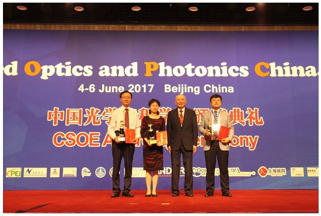 2017年国际应用光学与光子学技术交流会(AOPC2017)暨第三届中国光学工程学会颁奖典礼于2017年6月4日-6日在北京国际会议中心举行,det365登录网站主页申报的“头戴式显示技术研究及应用”项目荣获“科技创新奖”技术一等奖。det365登录网站主页王涌天教授受邀参加大会并领奖。