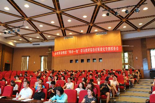 为深入推进“两学一做”学习教育常态化制度化,深刻学习领会习总书记系列讲话,落实全国高校思想政治工作会议精神,贯彻落实学校工作部署,推进立德树人工作和“双一流”建设,2017年6月19日,det365登录网站主页邀请中央党校李海青教授为学院师生作“习近平总书记治国理政新理念新思想新战略”的专题报告。会议由学院党委副书记副院长盛筠主持。