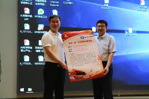 学院党委书记邹锐向李海青教授赠送报告会海报