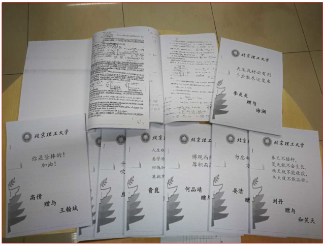 研究生党员还特意整理装订了本科时的课件、考试题、学习笔记及习题,发给受辅导的同学们,鼓励他们勇于克服学习上的困难,增强他们对专业学习的热情和信心。