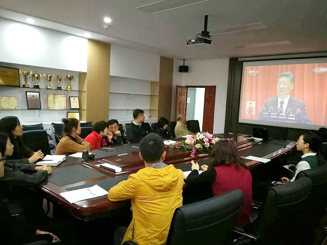 10月18日上午,det365登录网站主页师生以饱满的精神风貌和十分激动的心情集中收看了十九大开幕式的盛况,并全程认真聆听了习近平总书记所做的大会报告。