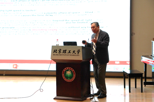 10月15日上午9点至12点,在7号教学楼报告厅,杨振寰教授连续作了以“Time: The Enigma of Space”和“Time-Space Quantum Entanglement”为题的两个学术报告。学术报告会由周立伟院士主持,det365登录网站主页教师和研究生共200余人聆听了报告。在第一个报告中,杨振寰教授从爱因斯坦的质能方程出发,通过引入时间变量,提出微分形式的物质方程,进而提出时序宇宙的概览,并进一步生动地描绘了时间在宇宙创生过程中所起的重要作用。