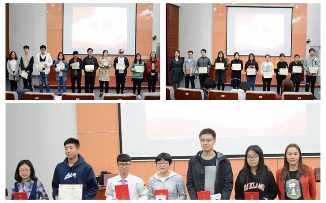 最后,盛筠发表感言,她首先对获奖的同学表示祝贺,并通过两个小故事,鼓励后进的同学们从现在开始,突破自我,迎难而上,争取先进;要求获奖的同学要戒骄戒躁,向着更高目标和平台,继续发挥领跑作用。她还感言在党的领导下,中国在政治、经济、文化、社会和生态文明建设方面取得了举世瞩目的伟大成就,同学们更应该珍惜当前美好时代,牢固树立“四个自信”,志存高远,牢记使命,为实现自我发展,为祖国繁荣富强而不懈努力奋斗。