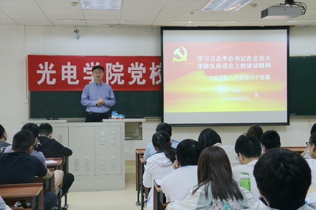 上午,学院党委书记邹锐为全体入党积极分子上党课《学习习近平总书记在北京大学师生座谈会上的讲话精神》,他领学了习近平总书记的讲话原文,号召同学们立足新时代发展要求,牢记和践行“爱国、励志、求真、力行”的要求,端正入党动机,早日成为一名光荣的预备党员。