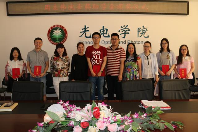 周霞老师首先介绍了学院捐助奖学金的设置情况以及奖学金评选的相关事宜,介绍了周立伟奖助学金的设置目的,并向获奖同学表示了祝贺。盛筠老师宣读了2017年度学院社会捐助类奖学金获奖等名单,并鼓励同学们向周立伟等光学前辈学习,不断创新,积极投身光电事业。