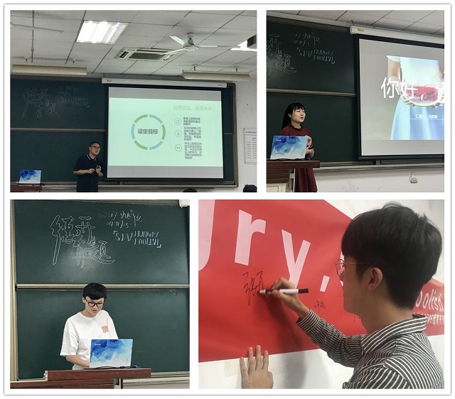 班委们精心策划,全体同学积极配合。第一位上台展示的王瑞同学首先总结了自己对大学生活与高中生活有区别的体会,并提出了自己在大学以学习导向性和娱乐辅助性的生活方式,在长远目标上希望自己能保研。随后同学们按照学号顺序依次上台展示自己的德育开题规划,大家用精美的PPT或清晰或朦胧,或多或少地向老师和同学们展示了自己对大学四年以及今后人生的一些规划。在答辩过程中,大多数同学都反思总结了大学一年来自己的不足之处,并积极提出了改正的方法和目标。有的同学还在答辩中以自己的榜样为楷模,激励自己更好地向着自己的目标奋斗!