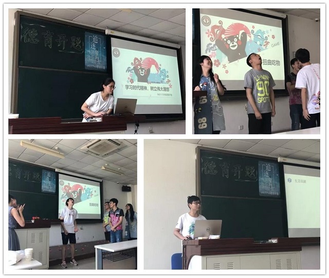 下午一点班会准时开始,现场布置得温馨活泼,det365登录网站主页副院长黄一帆通过视频向同学们送来了问候和期待。随后,每位同学轮流上台,从勇于创新,知难而进,艰苦奋斗,团结协作四个方面做了主题分享。同学们精心制作了PPT,配上了自己小时候的照片,体现了个人成长感悟。谭茵岚说在别人玩耍的时候学习累但感觉很充实,马润川说成功的标准是主观的,不要界定成功,要在意能力的提高,丁春旭要向榜样付时尧学习,培养学习兴趣和开放性思维,勇攀科学高峰。期间穿插的小游戏不仅活跃了气氛,也增进了同学们的友谊,现场其乐融融。
