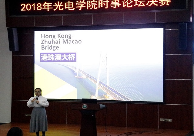 第二组选手从珠港澳大桥开通谈到谁将成为湾区盟主;从中国式家长这个游戏联想到对于父母应给予深深的感激;从中美贸易战谈到我国的应对方针及战略。选手表现信心十足,语言流畅,展现了当代大学生关心时政,主动思考,积极进取的精神风貌。