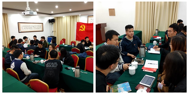利用晚上时间,两院党员们结合培训过程中的所感所想,以“如何在新时代下弘扬爱国奋斗精神,向着党的奋斗目标建功立业”为主题展开了讨论交流。最后大家针对支部建设、党员教育管理等工作内容作了经验分享。