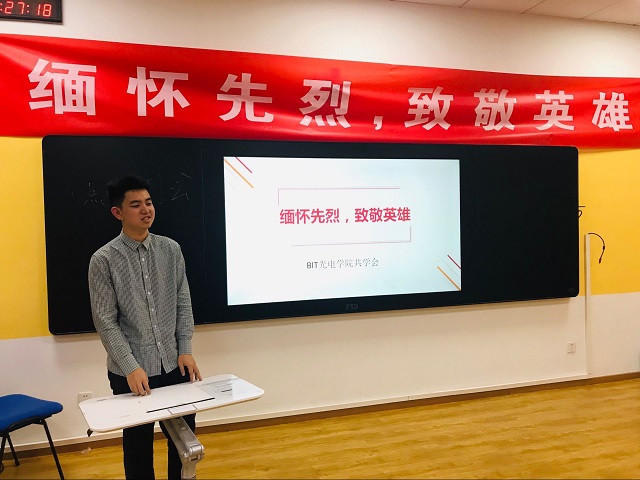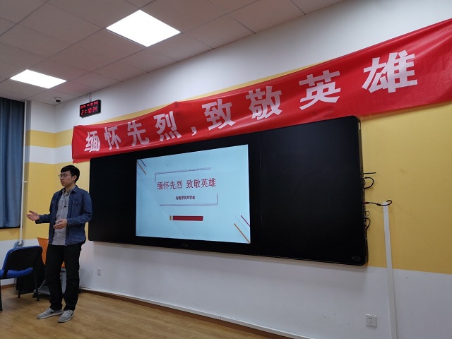 围绕着缅怀革命先烈,弘扬英雄精神的主旋律,同学们依次分享了先烈英雄事迹,从抗战到和平年代,不同的时代不同的英雄却是一样的英雄精神。让同学们在满怀崇敬与感慨的同时意识到没有什么岁月静好,只是有人替我们负重前行。