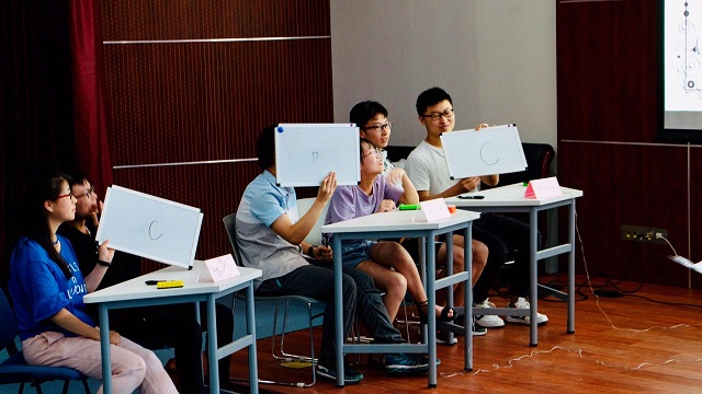 比赛进入第二轮,三组选手表现出了更加蓬勃的斗志,摩拳擦掌跃跃欲试,在图片题环节中,冷静自持,认真思考,由于图片题含有不定项选择题,对选手的知识掌握准确度要求更高,选手们表现得更加谨慎小心,不时与队友商议,给出最佳答案。比赛进行到第二轮,各小组之间稍有差距。