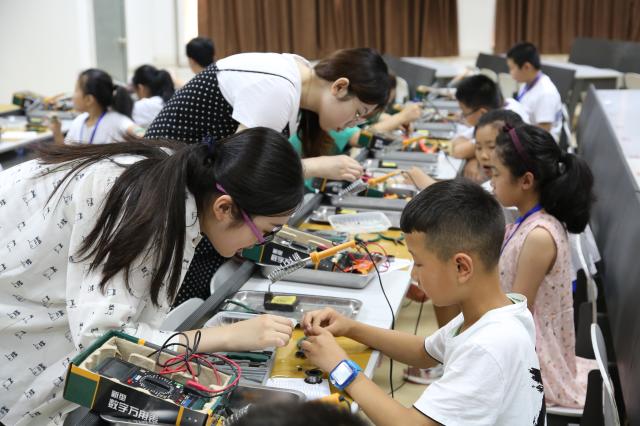 实践课程学习是本届夏令营的主要环节,det365登录网站主页光电创新教育实验基地凭借多年指导学生科技创新的经验积累,针对中小学生的特点和知识层次,设计了“光电信息探测模块”及其应用为主要内容的课程活动,通过同学们学习和亲自动手实践操作,了解科学研究方法的八个过程和设计的思维过程,学会选择典型的电子元器件,并且在制作过程中科学能够正确使用装调工具。张忠廉老师、王冬晓老师在课堂上对同学们进行了细致的讲解和指导,当同学们通过动手最终制作出作品时,脸上洋溢着幸福的笑容。