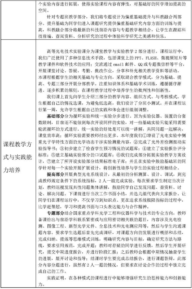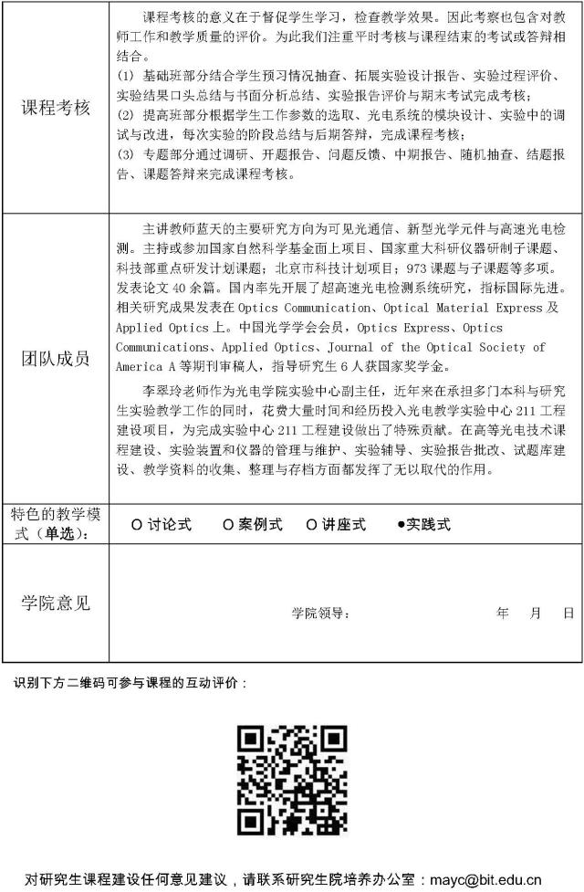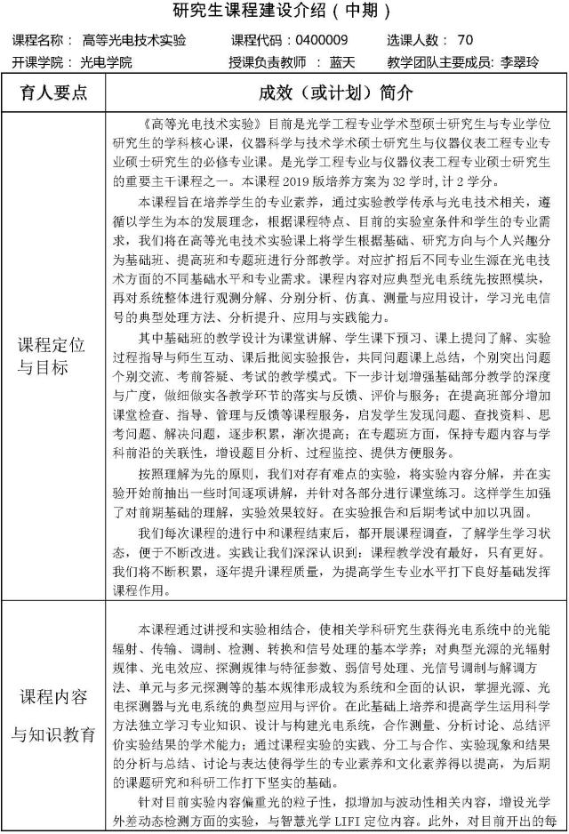 研究生课程建设简介--高等光电技术实验