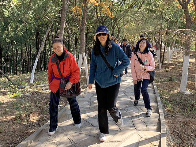 北宫国家森林公园位于丰台区长辛店镇的北宫森林公园内,恰如其名,其既有公园的惬意舒适,也有森林的原始韵味。园内极具南方特色的“水上公园”与青山相依,胜似画中美景。老师们三五成群,一路欢声笑语,时而欣赏着水面的彩虹,时而漫步在金色的银杏树旁,时而拾阶而上俯视着层林尽染。乐哉悠哉,其乐融融。