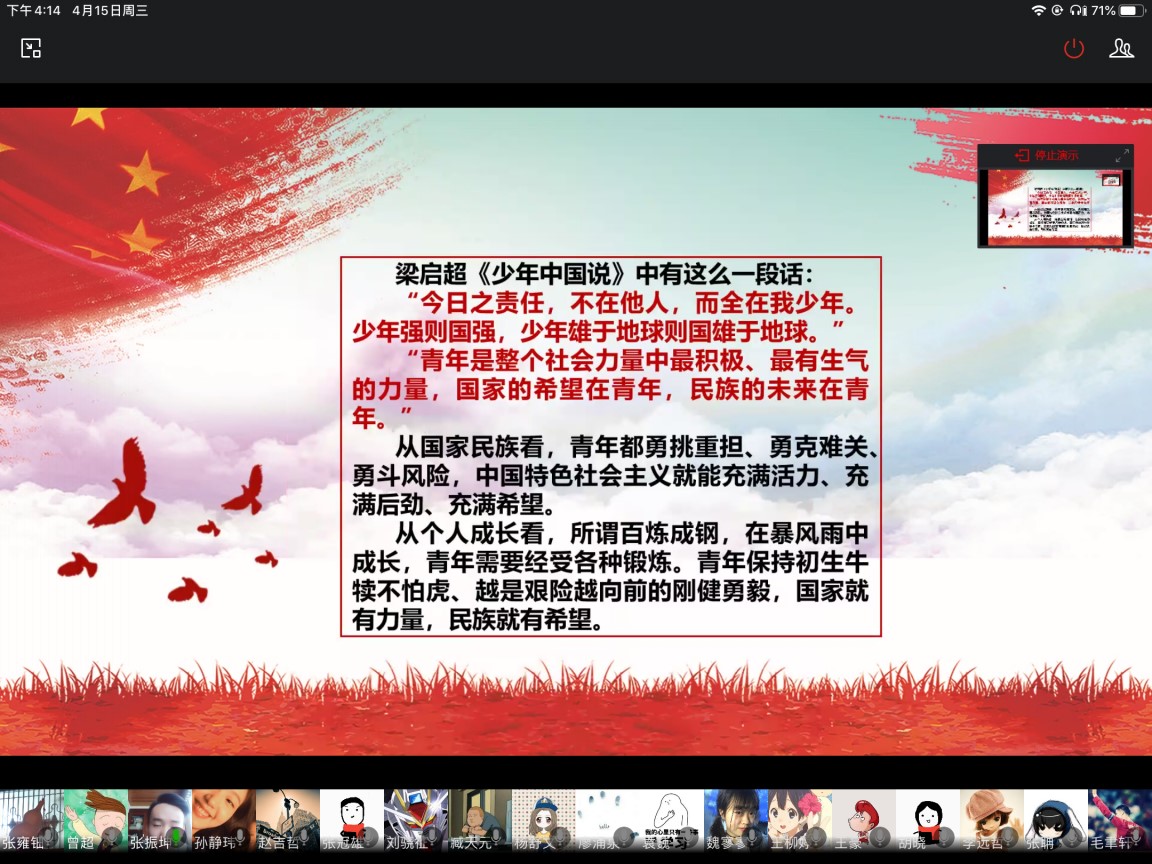 首先,大家共同学习“毕导”主持的青年大学习第九期线上学习视频《为打赢疫情防控狙击战提供科学支撑》。张振坤领学了“习近平给北京大学援鄂医疗队全体‘90后’党员的回信”。