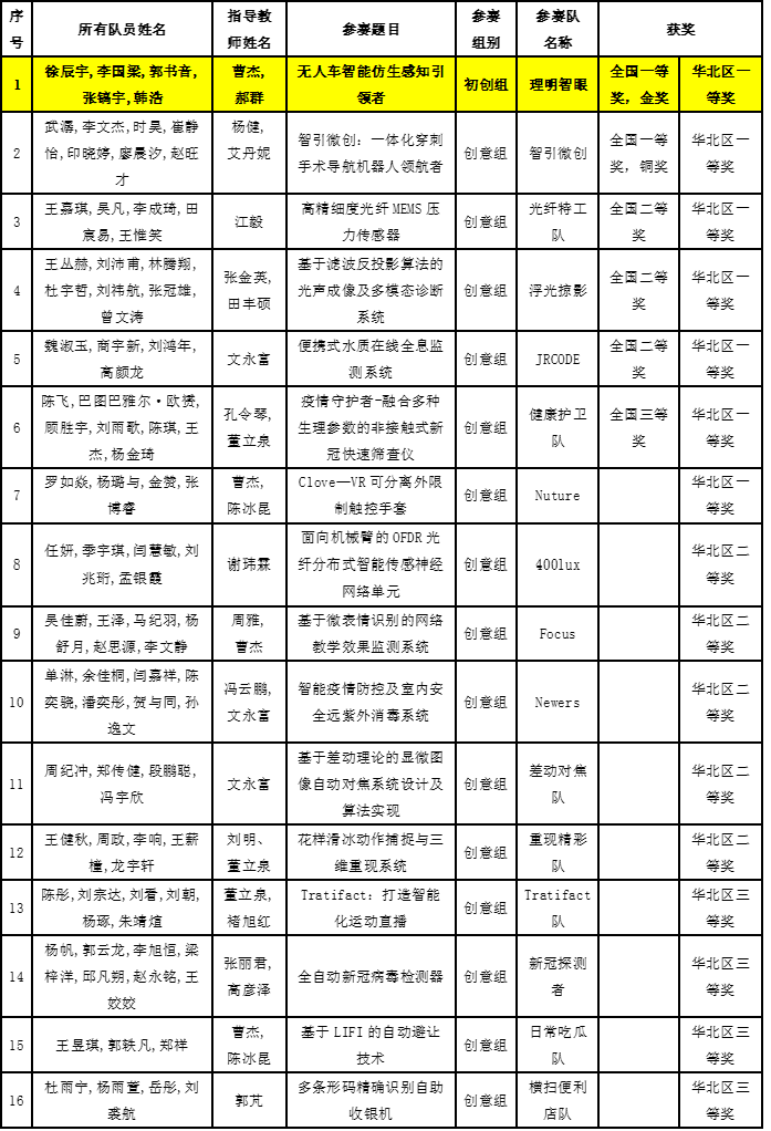 参赛及获奖名单如下(同等奖项内排名不分先后):