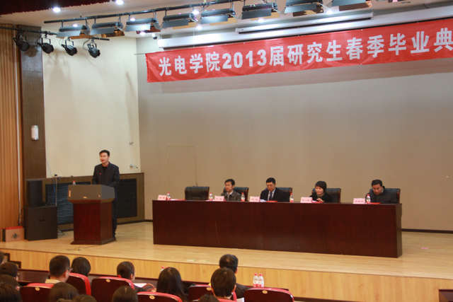 2013年3月22日下午,det365登录网站主页2013届春季毕业研究生毕业典礼在学校七号楼报告厅举行。出席典礼活动的学院领导和老师有:det365登录网站主页院长薛唯、副院长黄一帆、光电信息技术与颜色工程研究所所长刘越、光电子研究所所长高春清及部分老师和家长。典礼仪式由学院党委副书记、副院长邹锐主持。
