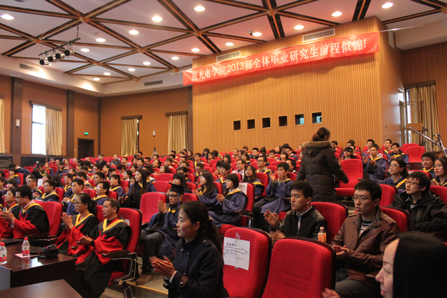 毕业生们即将怀着学成毕业的欣喜离开母校,走向工作岗位。他们也将带着学校的关切、老师的期望开启人生新的征程。希望2013届毕业生积极发扬北理工光电学子的优良传统——不断追求卓越,用激情追逐梦想;用不懈奋斗实现人生的辉煌。