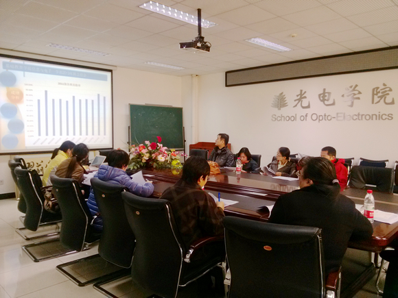 会上,付丹丹老师用详细数据和分析材料通报了我院大一大二年级学生的学习情况,对大一大二两个年级之间以及光电信息工程、光信息科学与技术和测控技术与仪器三个专业之间的学习成绩进行了比较和分析,对数学分析、大学物理等基础课的学习情况一一进行了通报,同时对大一年级学生的德育开题工作和良乡校区学生的安全工作等情况进行了说明。