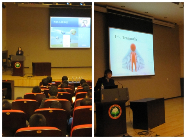 在几位主讲人将“考研”经历娓娓道来之后,本次交流会也宣告结束。经过学姐学长们的指导和建议,相信同学们能够在接下来的学习生活中坚持不懈的奋斗下去,不仅仅在即将来临的研究生入学考试中,还有未来的工作或研究中取得理想的成绩。