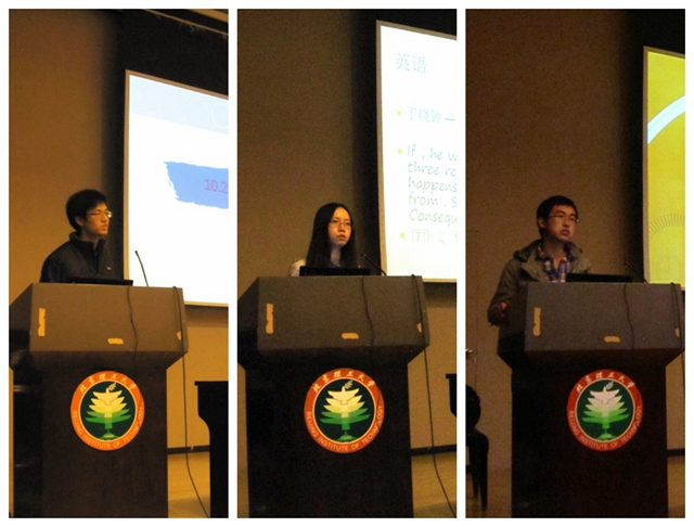 刘绍华则给出了几点忠告。复习期间打游戏等等松懈状态都严重影响复习效果和质量。身体状况也会直接影响准备工作过程乃至结果。王希在介绍了她的基本学习情况之外,还提供了一些实用的信息,如参考书的选择与英语和政治考试的复习策略。杜浩源同样在准备过程方面给予同学们非常有价值的建议,并为同学们加油打气。