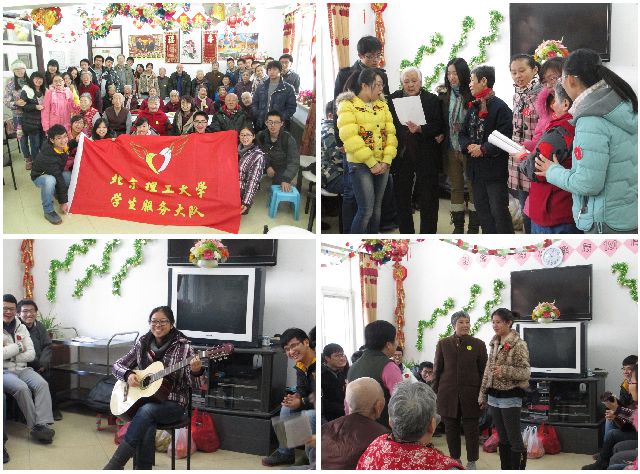 为凝聚青春力量,回报社会关爱。det365登录网站主页组建了励志服务队,成员由获得国家奖助学金和社会捐助类奖学金的同学组成。2013年12月29日,det365登录网站主页励志服务队一行来到东直门街道敬老院开展“敬老爱老,身体力行”志愿服务活动。