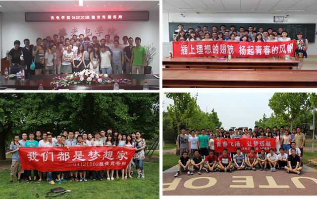 学院高度重视毕业生教育工作,2014年6月13日—16日开展了毕业生德育答辩活动。光电子三四班班“青春飞扬,让梦远航”、04131001班“我们的征途是星辰大海,一起吧啦吧啦”、04111001班“插上理想的翅膀,扬起青春的风帆”等口号鼓励同学们为自己的目标努力和奋斗;光电子一二班“我们都是梦想家”,表达了对大学生活和同学们的留恋和不舍、04111002、04131002班“回首、展望、重逢、微笑”道出了德育答辩的主题。