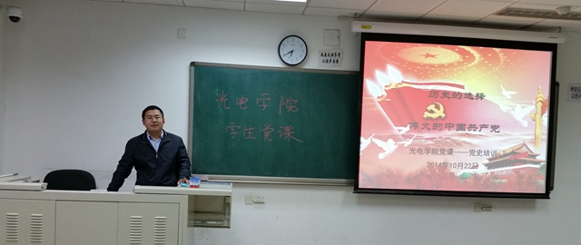 当前,广大青年学习党史是提高思想政治素质的一项基本要求。为了让广大青年在当前历史时期,了解党的发展历程,不断从党的奋斗历程中总结经验和教训,提升政治素质,继承和发扬党的优良传统,培养良好的学习和生活习惯, 2014年10月22日,学院分团委举办了“与信仰对话系列活动”之“学党史•感党恩”党课。课程由后勤集团团委书记王海涛老师主讲,全体党员骨干和入党积极分子参加。