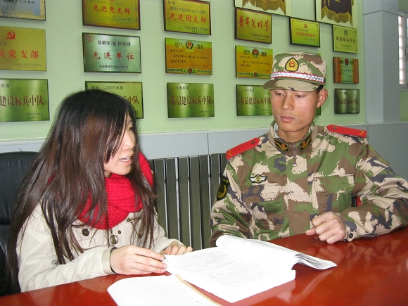 党员们都把帮助国旗护卫队士兵提高文化知识看成是一种义不容辞的责任,党员们都本着 “认真、耐心、细致、精确”的思想投入到此次活动中,活动定为每周末派两名党员前往为其进行学习辅导。