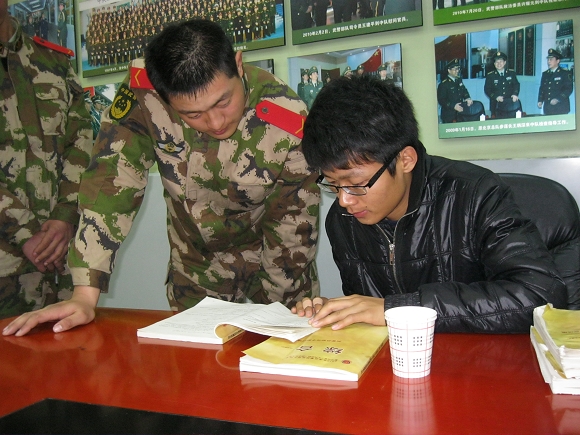 2010年10月至今,det365登录网站主页2010级硕士光工第二党支部和天安门国旗护卫队党支部建立了主题为“帮助战士,充实自己”的长期合作的共建活动。研究生党员针对国旗护卫队中需要参加高考的战士进行文化知识的辅导,战士们向学生党员传递爱国情怀、吃苦精神。国旗护卫队的战士中,有些战士想进一步拓展自己的知识,提高自己的学历,但是由于护卫队成员特殊的护卫任务,学习时间不灵活,难以找到能辅导的老师,我支部了解到此情况后,决定与国旗护卫队建立此种长期辅导的活动,这一活动全体党员积极响应支持。