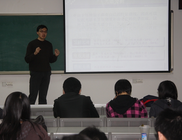王允博士深入浅出地向在场同学分别介绍了拉曼光谱探测技术、共焦技术的原理和现阶段的应用,又用数据、图表等直观说明了二者融合之后的优势,最后,通过实例演示展示了差动共焦拉曼光谱探测技术在实际生产生活中的应用。王允博士语言风趣幽默,感染力强,现场气氛十分活跃。讲座过后,在场同学踊跃提问探讨,王允都给予了详细解答。