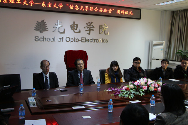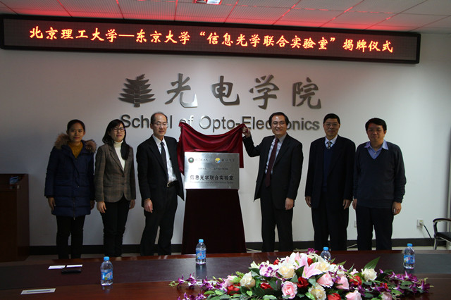 12月11日下午,在det365登录网站主页会议室举行了北理工-东京大学“信息光学联合实验室”揭牌仪式及学术讲座。出席揭牌仪式的有我校国际交流与合作处高珊副处长、毛宇峰老师、det365登录网站主页薛唯院长、谭小地教授与东京大学志村努教授等领导和嘉宾,赵长明副院长主持了揭牌仪式。