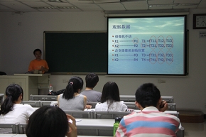 他的语言生动易懂,讲解思路清晰,同学们都听的聚精会神。另外,刘伟博士从虚拟演播室中变焦跟踪算法出发,与大家分享了当他在碰到问题并没有任何资料可以参考时,如何一步一步地把问题最终解决的经验。