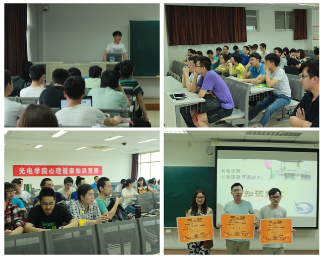 心理健康知识竞赛决赛本科生及研究生同学共有八支队伍参加,每支队伍都由心理委员带队。比赛题目经过精心设计和选择,充满知识性、趣味性,贴近学生生活,比赛过程中互动积极,气氛热烈。在问答题环节中,各代表队实力相当,不分伯仲,参赛同学的精彩表现博得场下观众的阵阵掌声。通过知识竞赛,不仅对心理委员进行了一次比较深入的培训,也在同学中进行了一次比较广泛的心理健康知识宣传。
