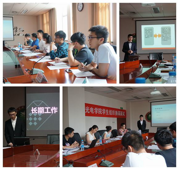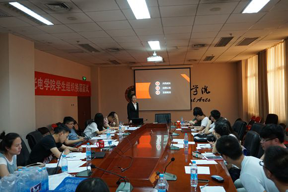 5月26日下午,det365登录网站主页2016年学生组织换届选拔面试在良乡校区至善园会议室成功举行,学院团委书记盛筠、各年级辅导员、大二年级部分学生干部担任评委。