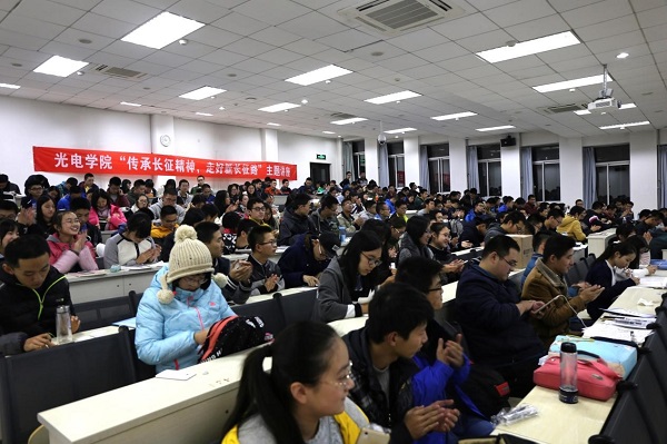 为了进一步深化“两学一做”学习教育活动效果,落实“五个三比”,让广大青年更好的学习长征精神,在新时期走好自己的大学路、人生路,11月8日晚在综教406,校友高博老师应邀为同学们开展了“不忘初心,走好新的长征路”的专题讲座,和青年学子们共同探讨大学成长之路。学院副书记、副院长盛筠,校团委实践部李广东,学院辅导员、大一大二学生,以及校团委“德”字班部分学员参加了本次讲座。