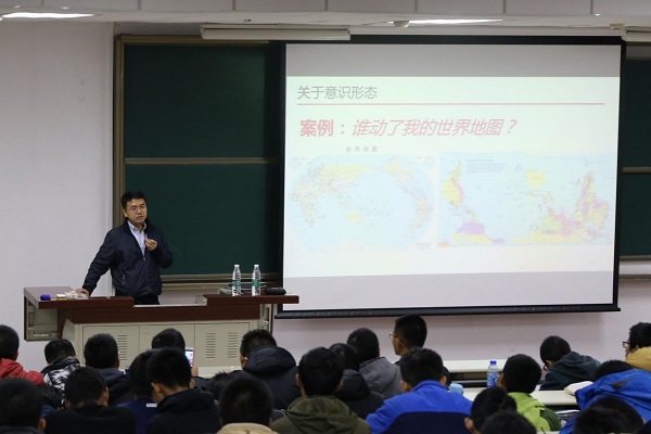 高老师讲座分为三个部分,第一部分——不忘初心,走好新的长征路。他以中国共产党建立之初的赤子之心开篇,引用习总书记的讲话“明镜之所以照形,古事之所以知今”,通过对照国内外形势,指出中国共产党是以人民为中心的政党,每一代人都要牢记使命,要鄙弃封闭僵化的老路,更不能走改旗易帜的邪路,站在不同的历史时期,走好自己的长征路。并劝诫作为青年的同学们要有“为世界进文明,为人类造幸福”的意识。