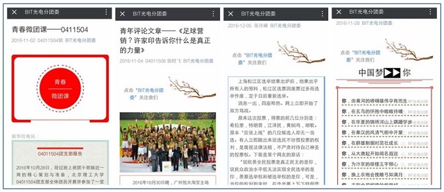 本次活动各团支部集思广益,形式多样。有的支部集中学习习近平总书记系列重要讲话、学习长征精神、讨论社会主义核心价值观;有的支部参观博物馆、祭扫烈士陵园、分享长征故事、观看红色电影等。有的支部创新形式和内容,如04011608支部在烈士墓前开展“青年话理想”,04011506支部提出“饮水思源,砺已为源”,04241401、04241402支部将长征精神具化成青年责任,开展“理想征集”,04011606支部提出“美化校园从我做起”,组织团员美化校园。为了更进一步扩大团日活动的影响力,各支部发起“网络讨论”、“线上分享”等等,不仅通过讨论、投票、转载等丰富活动内容,还积极撰写个人心得、活动评价。配合团日活动开展,各支部积极制作青春微团课10部,其中2部获得校级优秀网络青春微团课,撰写青年评论文章41篇,创作网络文化作品22件。