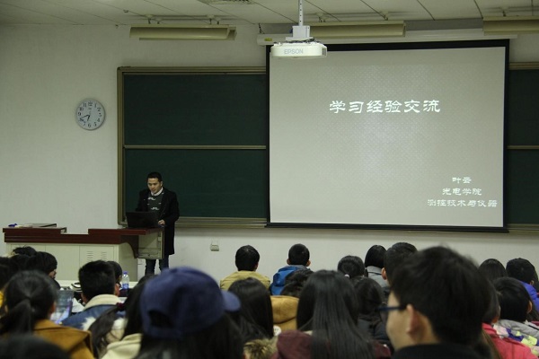 为了给低年级同学提供更有效的学业辅导和发展方向交流,det365登录网站主页优秀学生轮讲活动于12月9日晚18:30 在理教1-402 顺利召开,活动邀请大四优秀学生代表叶云、陈馨怡、孙义钰、张璐杰为2015、2016级本科生介绍成长经验。