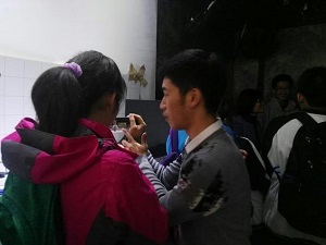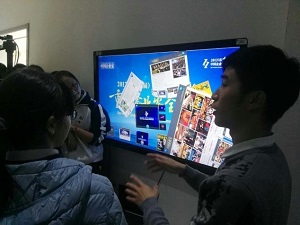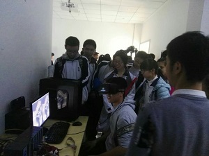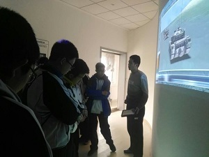 活动中向同学们展示了世界前沿的虚拟增强现实相关的各项技术。在平视显示系统前,工作人员一边引导同学们观看叠加在全息透镜上的数字仪表信息,一边为大家讲述该系统从军机专用到而今普及进入汽车导航的跨越发展。在智能多点触控屏前,工作人员讲述了在普通LED大屏上加载多点触控识别的机理以及其优势。在观看军演沙盘投影系统演示和汽车自由曲面投影系统演示时,炫彩有趣的动画效果令同学们驻足,大家纷纷拿出手机拍摄,记录下这美妙的数字画面。同学们还观看了虚拟现实立体观影设备带来的震撼3D效果影片,体验了增强现实显示头盔和人机交互系统,展厅里不时传出同学们的惊呼,这些平日里只有在电影里才能见识到的黑科技,今天竟然就出现在了自己眼前……