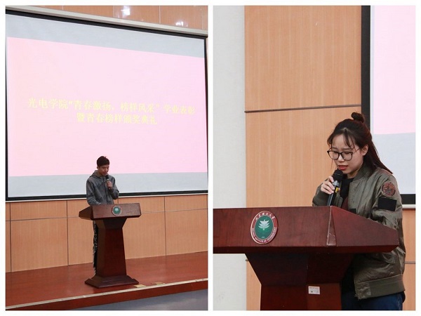 随后获奖代表陈心愉、王豪分享成长心得。陈心愉结合自己的学习和思想变化过程,告诉大家:“想要成功,只要你想做并为之付出努力与坚持,总能做到”。王豪结合班级建设具体方法和心得,强调了优秀的集体是个人成长的有力保障。