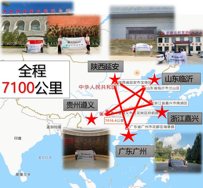 回眸光辉历程,致敬百年党史,“对话”革命先辈,赓续“精神”血脉。恰逢迎来建党百年华诞,det365登录网站主页中国“星”实践团赴红色教育基地进行社会实践活动,团队共去往五座城市——陕西延安、山东临沂、浙江嘉兴、广东广州、贵州遵义,这五个地点在中国地图上恰好连成一颗五角星,代表着对党的赤诚之心,同时五个地点总里程数也恰是7.1千公里。参观当地红色教育纪念馆,与老红军对话,重温先辈们难忘的革命故事,时刻铭记历史,不忘初心,凝聚继续奋进的力量,更好地勇毅前行。