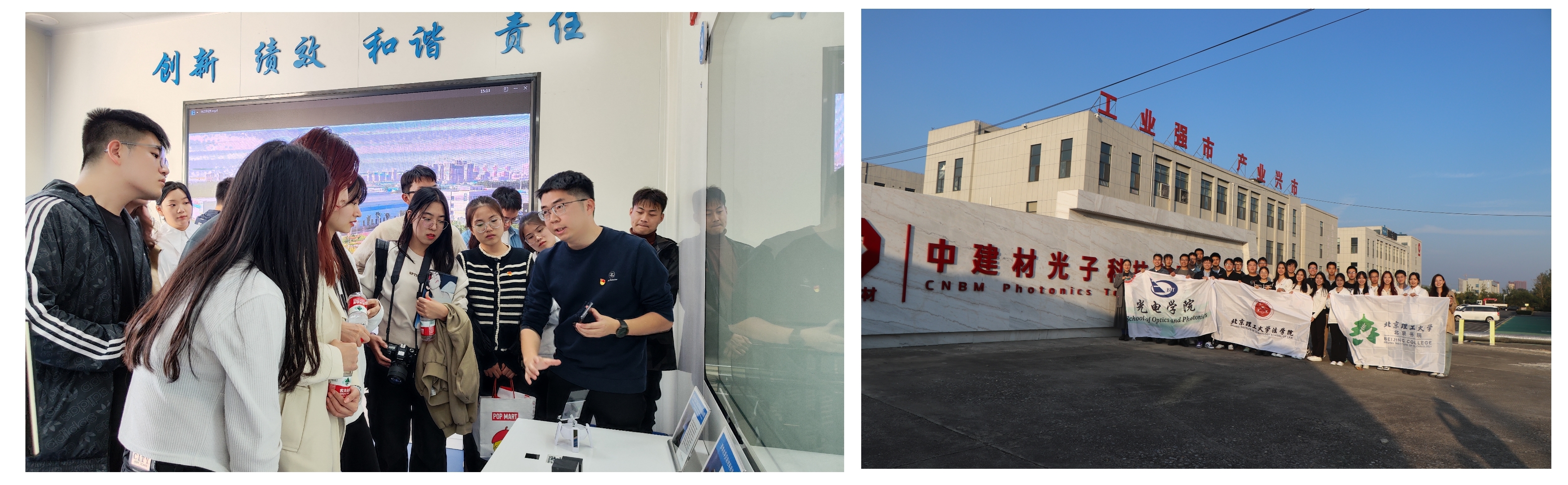 21日,师生一行来到中建材光子科技、光芯科技有限公司进行交流实践。det365登录网站主页副书记、副院长盛筠,北京学院副院长李晋,法学院副书记、副院长马晓龙,书院党委组织员方婳婳,枣庄经济开发区管委会副主任陈广夫,中国建材总院北京分公司党总支书记、总经理、中建材光子科技、光芯科技董事长贾金升,中建材光芯科技有限公司党支部书记、总经理张兵强,中建材光子科技有限公司党支部书记、总经理张洋等校企代表共同为det365登录网站主页书院党委党员教育培训基地举行揭牌仪式,仪式由张洋主持。