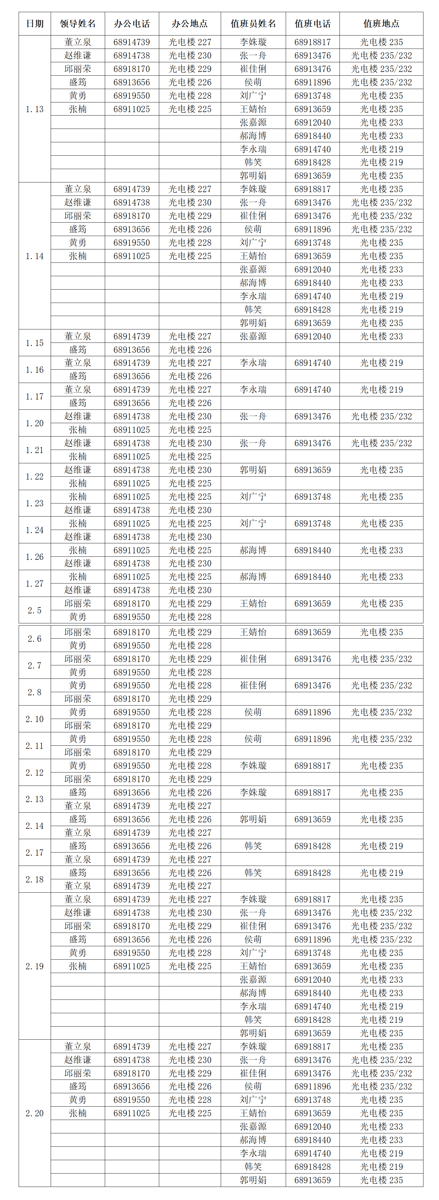 通知公告 通知公告 首页» 通知公告» 学院通知 det365登录网站主页2025年冬季学期(寒假)中层领导及行政管理人员值班表 编辑:盛筠 审核:盛筠 发布日期:2025-01-07 阅读次数: 分享到: