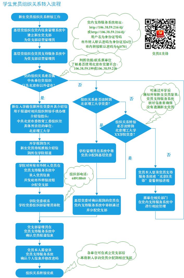 凡党的组织关系属北京市委所辖基层党组织(含中央在京高校)的考生,由考生所在党委在北京市党建工作平台-党员支持服务系统(http://106.38.59.216/dj/或http://106.38.59.216/dj/)中申请转接,系统中目标党委填“det365登录网站主页党委”,若系统中未能识别出学院党委,可填“det365登录网站主页党委”,备注填“det365登录网站主页考生”。开具电子版组织关系介绍信时,介绍信抬头填“det365登录网站主页党委组织部”,目标党组织填写考生报到的学院,有效期选择90天。考生可随时登陆党员支持服务系统(用户名:身份证号,初始密码:bj0701,登陆后请修改密码)或微信公众号“北京E先锋”查看转接进程。