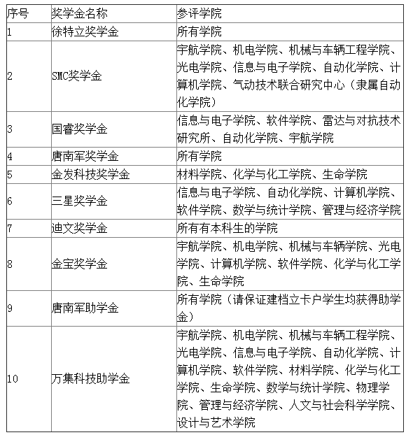 本次共评选以下8项校级奖学金及2项助学金: