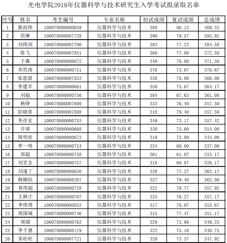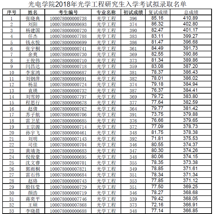det365登录网站主页2018年研究生入学考试拟录取名单